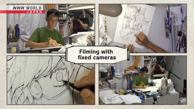 NHK World, the Japanese TV channel that is akin to England’s BBC or Deutsche Welle in Germany, features a stunning Anime/Manga Spotlight series of documentaries giving a premium inside look to the life and work of great anime and manga artists, including of course the best-selling names of Hayao Miyazaki and Osamu Tezuka. One of my favorite episodes though is this one featuring Wataru Watanabe, artist of the manga series Yowamushi Pedal — where we see the artist working on real time with dazzling technique and speed, not unlike the bicycle races he draws… and performs, as a competitive cyclist himself. He embodies the perfect balance of keeping not just being creative, but also healthy while at it — AND using his sports practice as material for his manga stories.